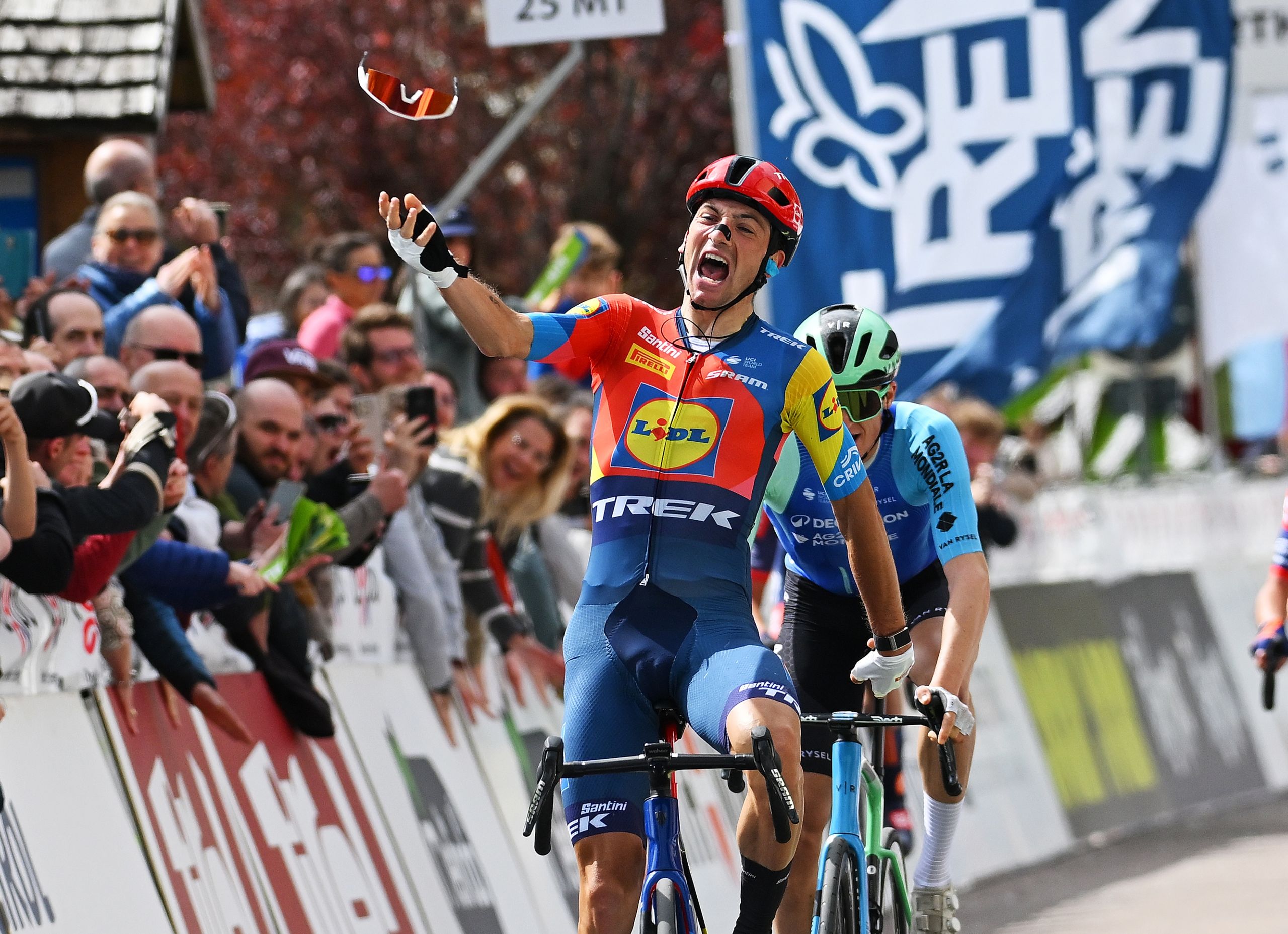Lidl – Trekのジュリオ・チッコーネは、2025 ツアー・オブ・アルプス第1ステージの勝利でサングラスをぶん投げた。