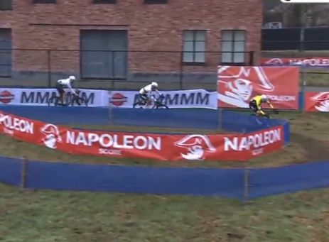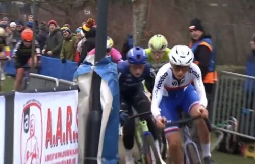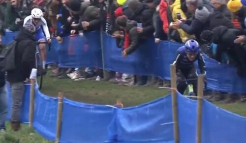 ワウト・ファンアールトが落車しそうに。よく滑る。