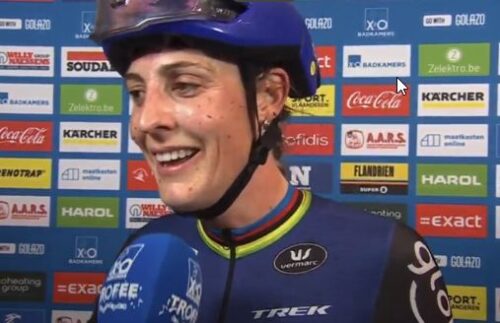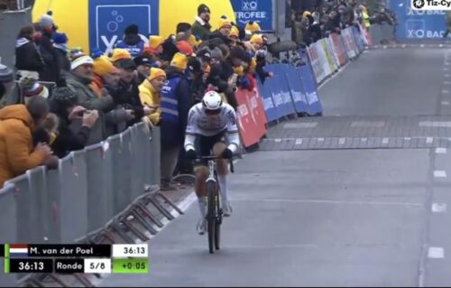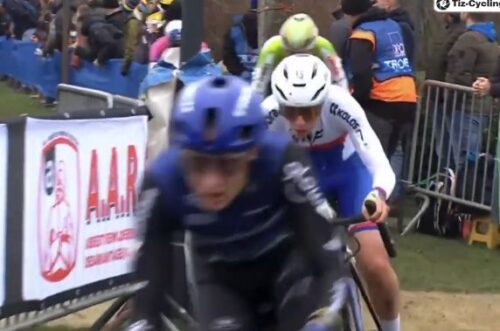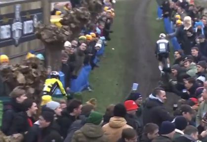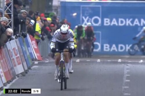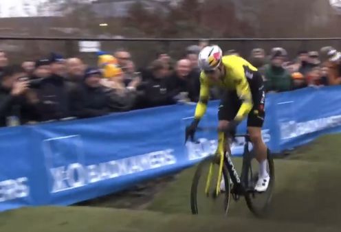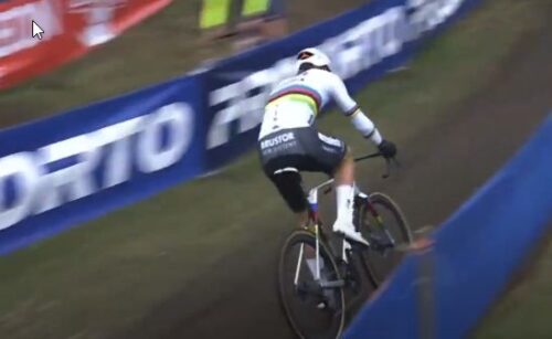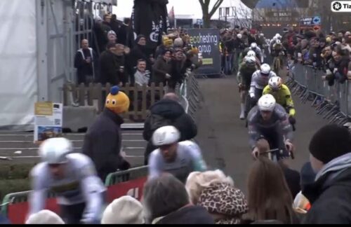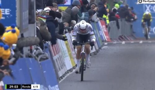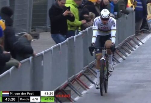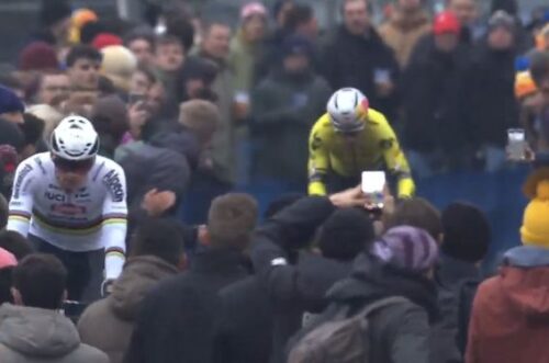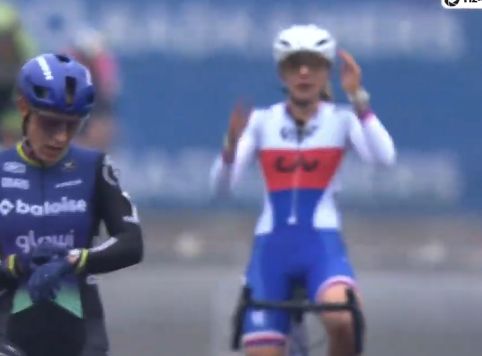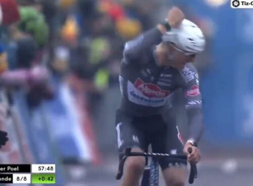 マチュー・ファンデルプールは、観客をみて手をあげた。これは別記事に。