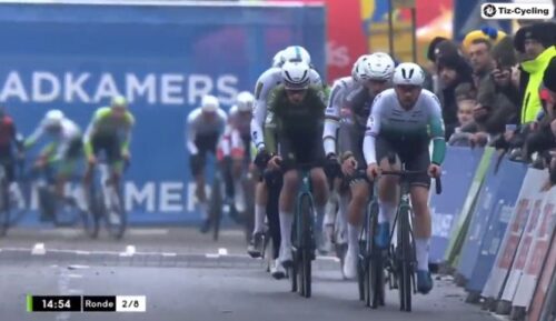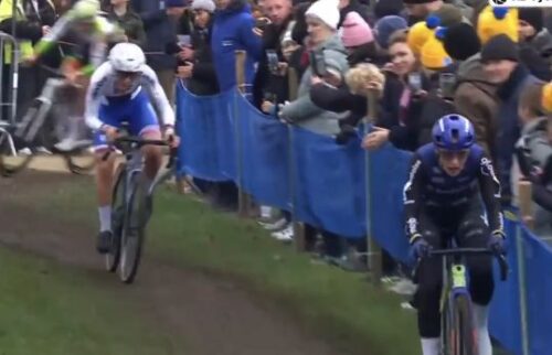 ワウト・ファンアールトは、パンクしたまま追いつかれた。ようやくバイク交換。