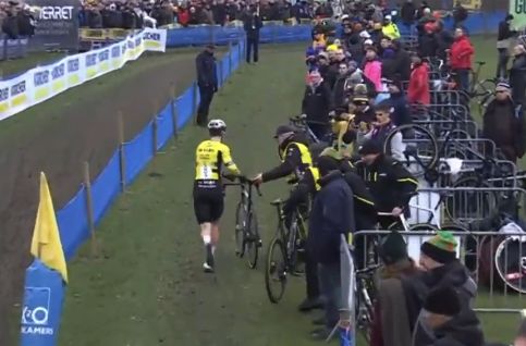 ワウト・ファンアールトが、ようやくバイク交換。2度もパンクするとは~。