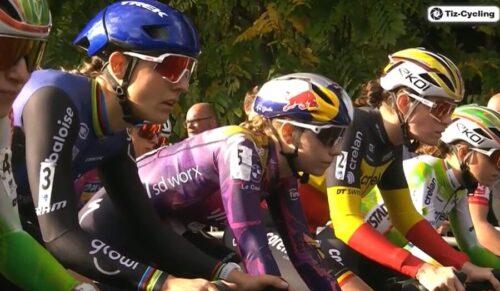 ルシンダ・ブランドがバイク交換でパックの最後尾に。