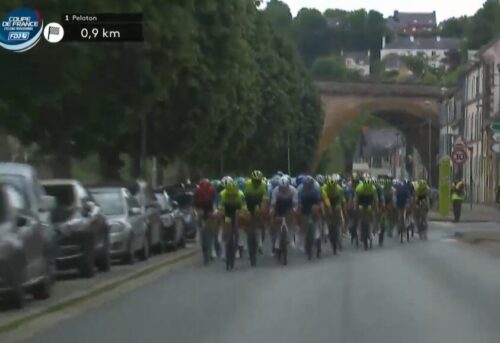 集団はArkéa – B&B Hotels先頭。12秒差で通過。
