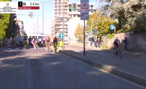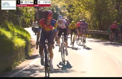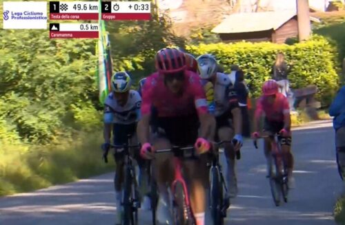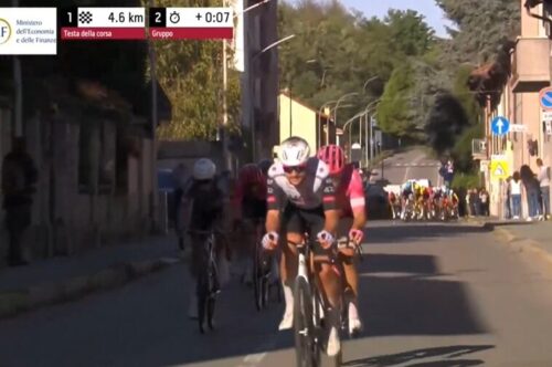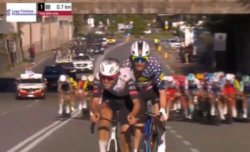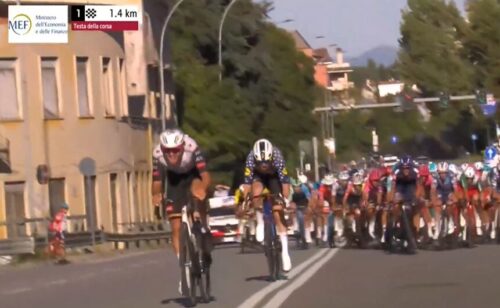 ここでUAE Team Emirates – XRGのアレッサンド・コーヴィが、あきらめずにアタック。
