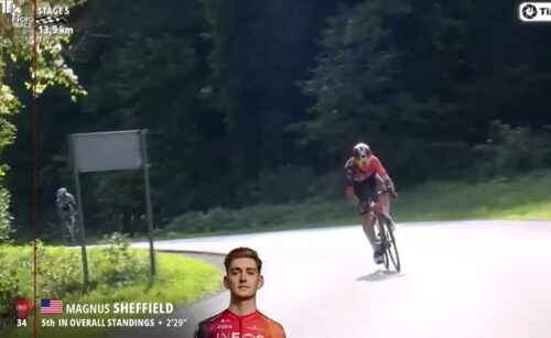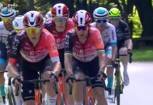 INEOS Grenadiersが頑張ったけど登りで集団は崩せず。残り3.7kmに。