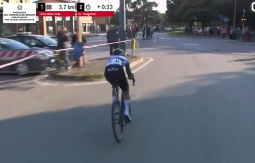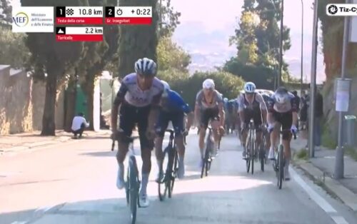 8人が逃げている。エリア・ヴィヴィアーニは現役最後のレース。