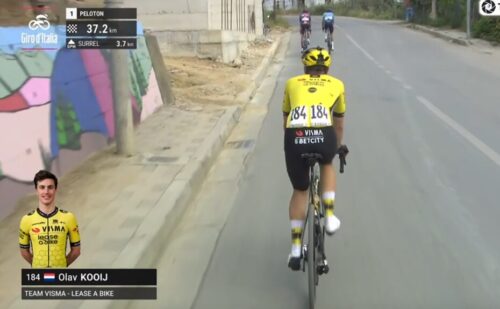 集団をTeam Visma | Lease a Bikeが引くということはワウト・ファンアールトが狙うということか。ジロのスタートまで数日あり、ウイルス感染から少し戻ったとも。