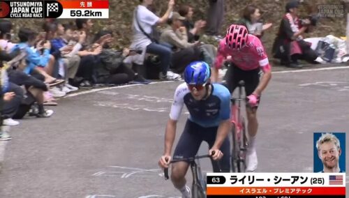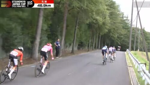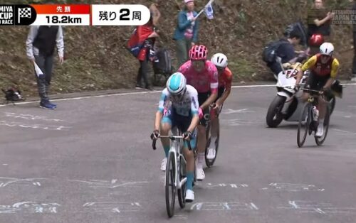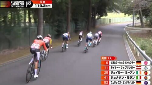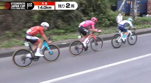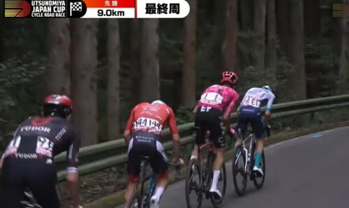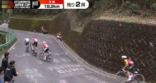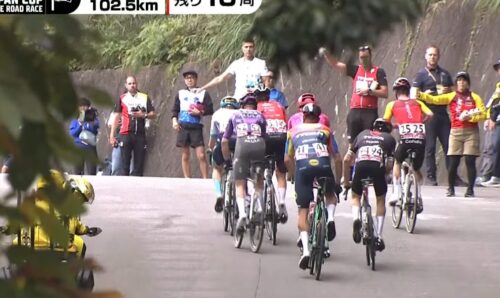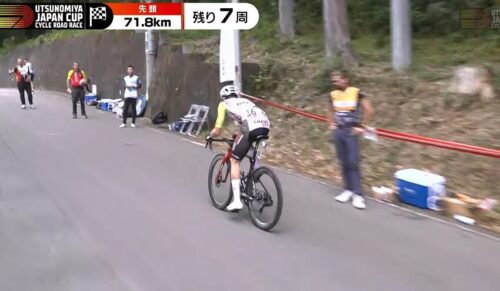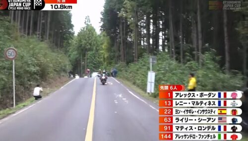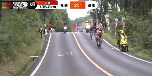 あ~、1周目の登りから全開。日本人選手が逃げに乗るパターンは難しそう。