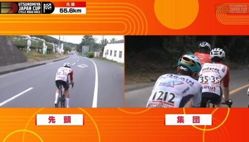 集団は1分5秒差で通過。これは前を捕まえるのか。