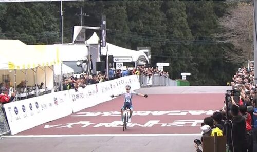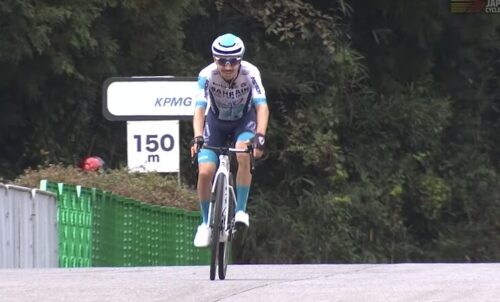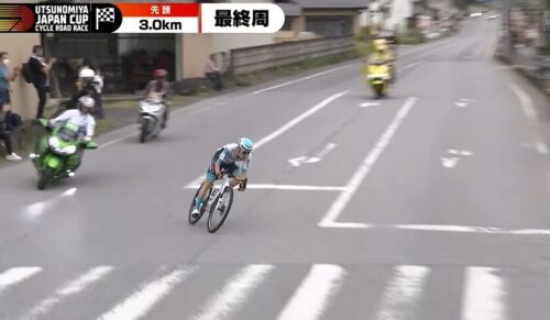 残り10kmで勝負がつく。JCL Team UKYOはアレッサンドロ・ファンチェル。