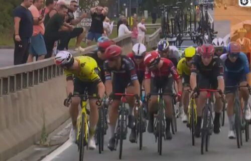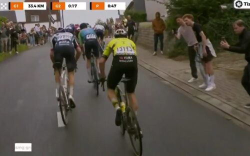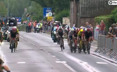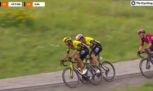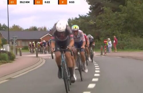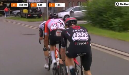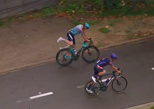 Team Picnic PostNLのパベル・ビトナーーとXDS Astana Teamのマイク・テウニッセンが落車。