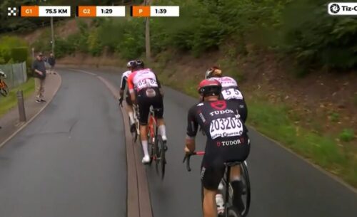 Tudor Pro Cycling Teamが先頭。2番手はワウト・ファンアールト。