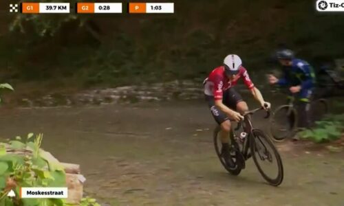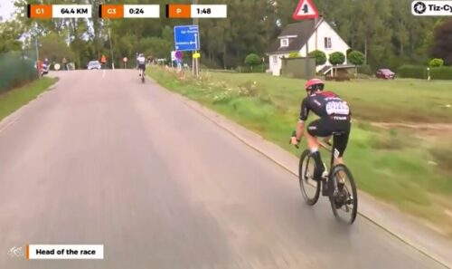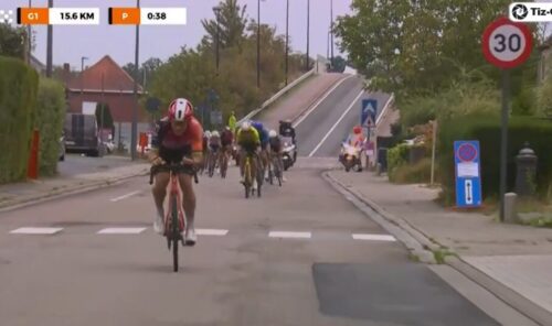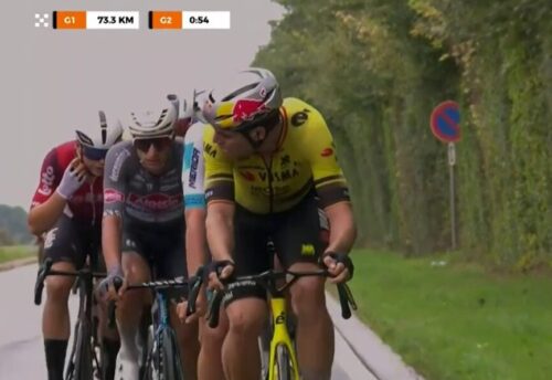 先頭は捕まりワウト・ファンアールトは追走。まあ追いつく。
