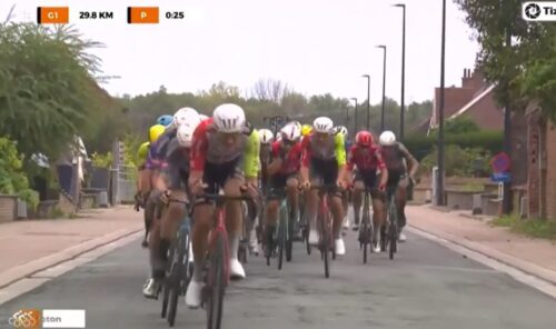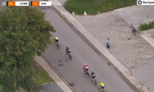 おっと先頭を走っていたTudor Pro Cycling Teamのミカ・ヘミングがオーバーラン。落車は免れた。
