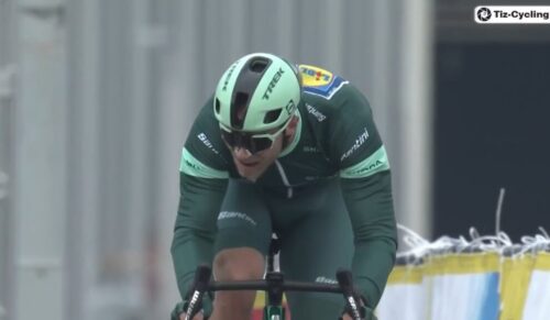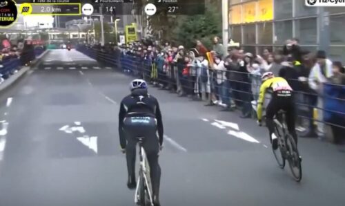 ヨナス・ヴィンゲゴーが先に仕掛けたけど、Soudal – Quick Stepのオレリアン・パレパントルが山岳ポイントかな。先着した。