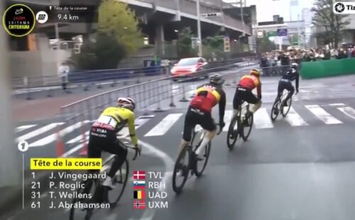 あららっ、落車。ヨナス・ヴィンゲゴーが巻き込まれている。