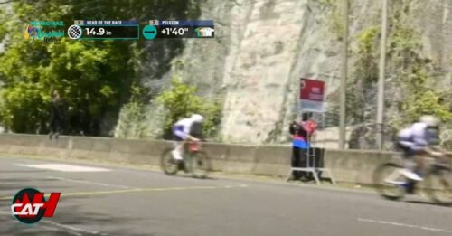 先頭は4級山岳を通過。タイム差は1分40秒。