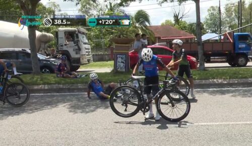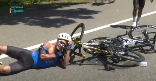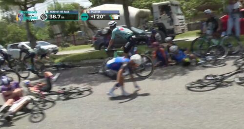 あっと、また愛三のライダーが落車に。ゼッケン分からず。