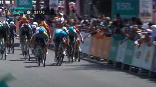 残り2km。Burgos Burpellet BHのジャンバルジャムツ・サインバヤルが少し逃げていたが捕まる。