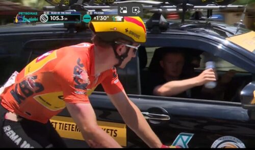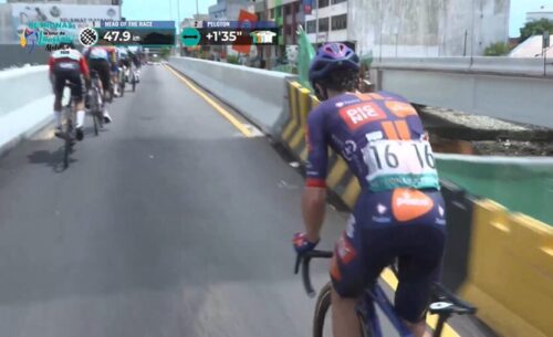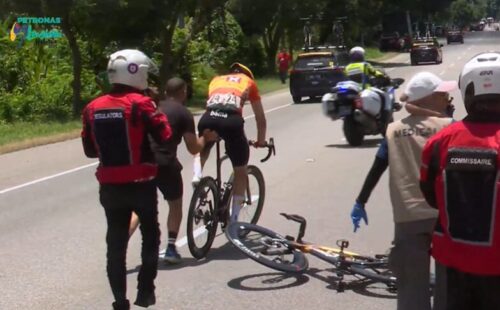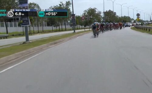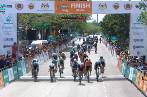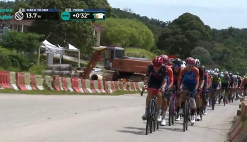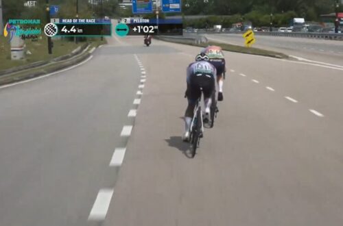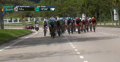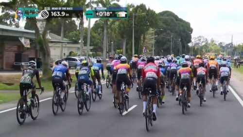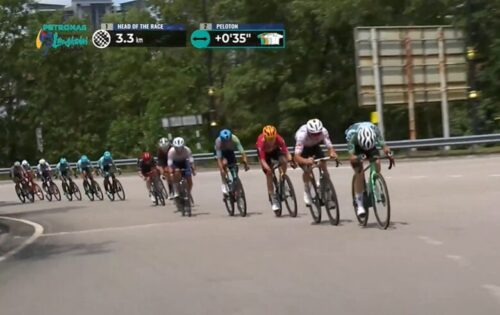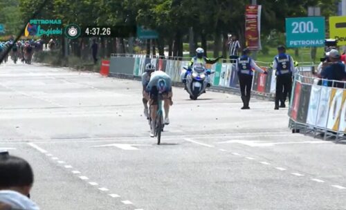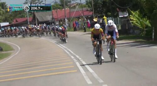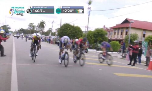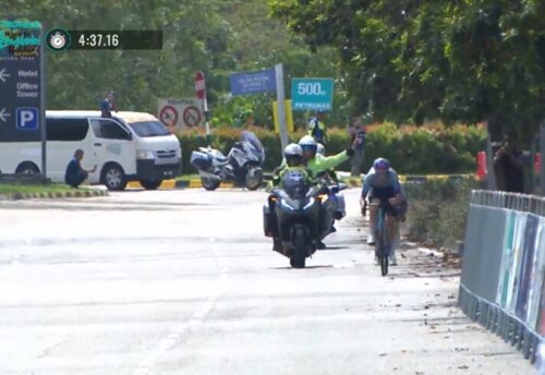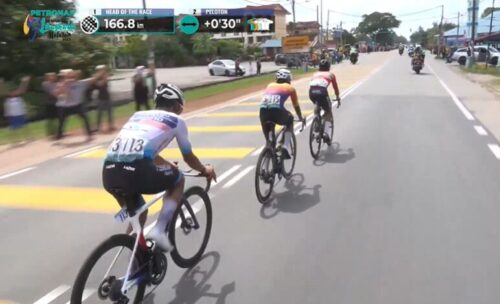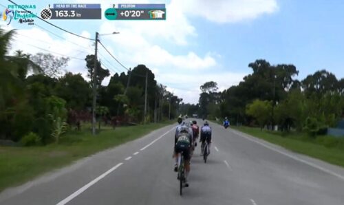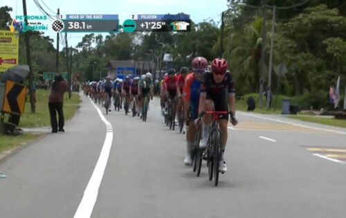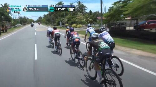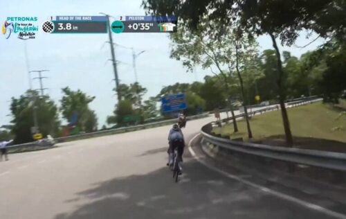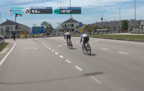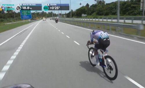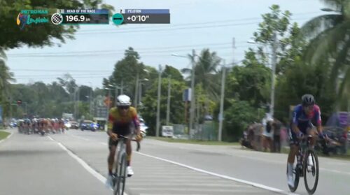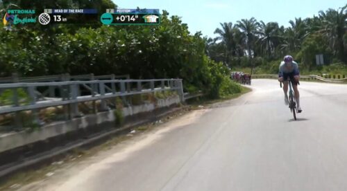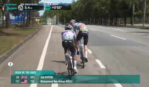 長いCMがあけると先頭はTerengganu Cycling Teamのムハンマド・ヌル・アイマン・ビン・ロスリ単独となっている。6年連続のマレーシアTTチャンピオンで2025マレーシアロード王者。