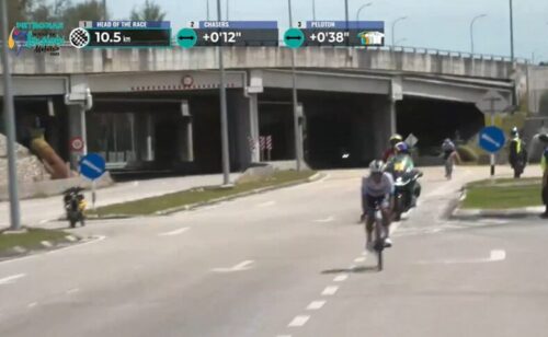集団トップはアーヴィッド・デクレイン。Tudor Pro Cycling Teamは勝利を逃してしまった。