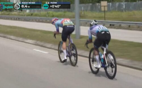 残り8.4kmで40秒のタイム差。ムハンマド・ヌル・アイマン・ビン・ロスリは先頭交代しない。
