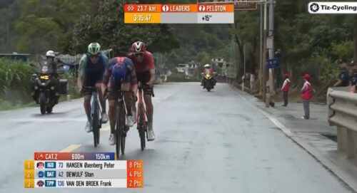 ポイントは INEOS Grenadiersのピーター・オクセンバーグがトップ通過。