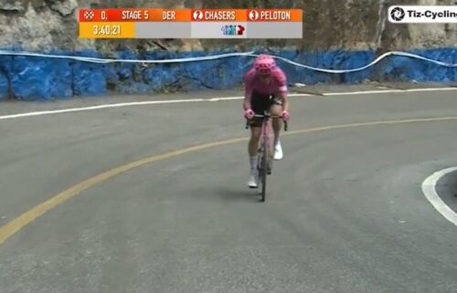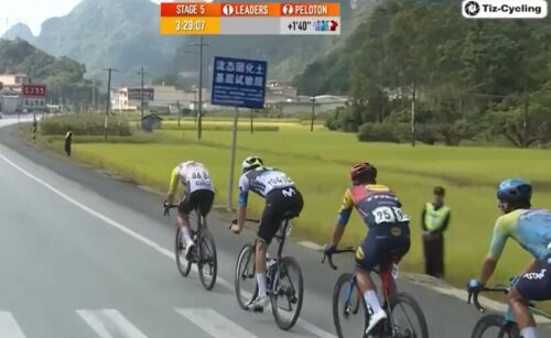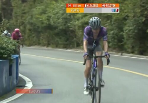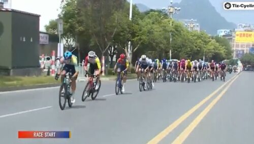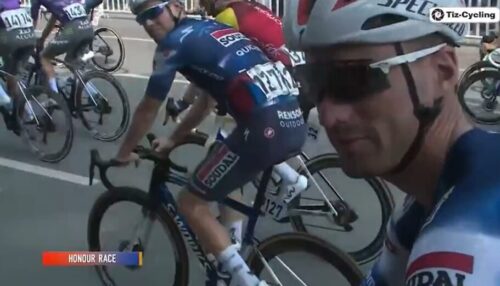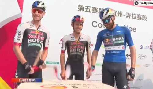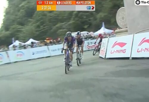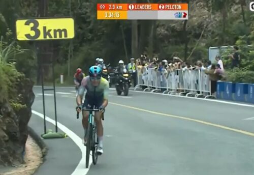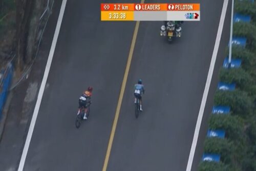 Team Jayco AlUlaのポール・ダブルが先頭に。後ろは、Red Bull-BORA-hansgroheのベン・ツボィホフ。