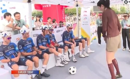 中国は今日も暑いみたいですね。ポール・マグニエは背中の無線をいじっている。