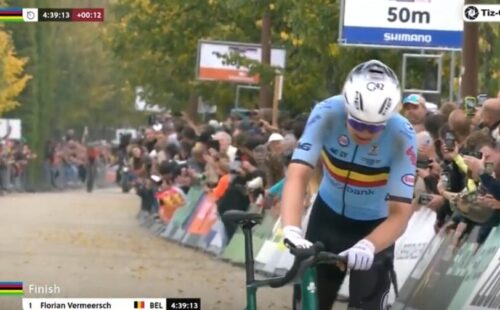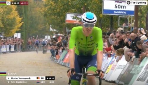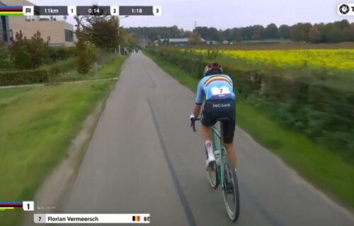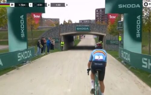フロリアン・フェルメルシュは残り1kmのゲートに。