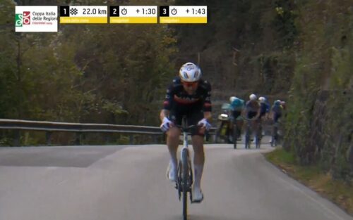 ディエゴ・ウリッシは遅れたが、フロリアン・フェルメルシュとサカリアス・コラー・ローランドが追ってきている。下りなので追いつくだろう。