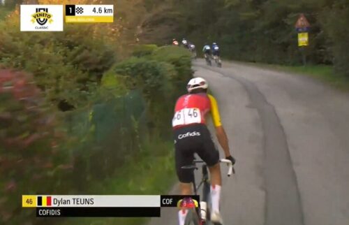 Cofidisのディラン・トゥーンズは追いつかない。登りが始まってしまった。