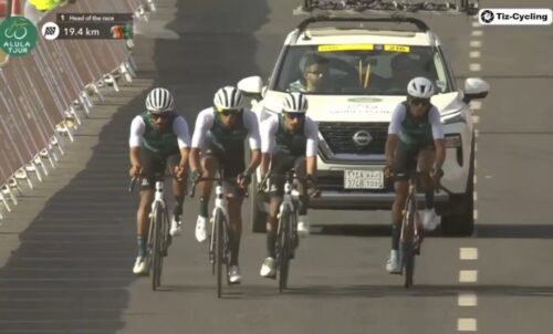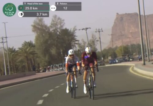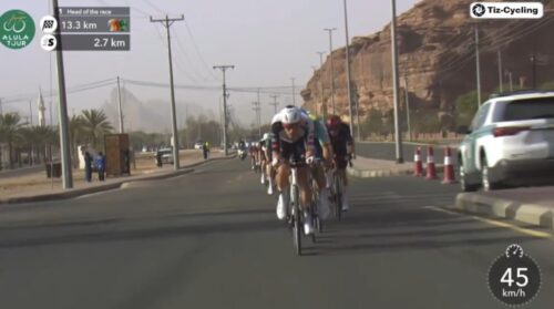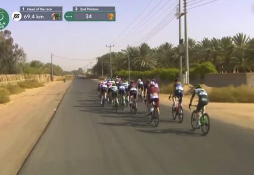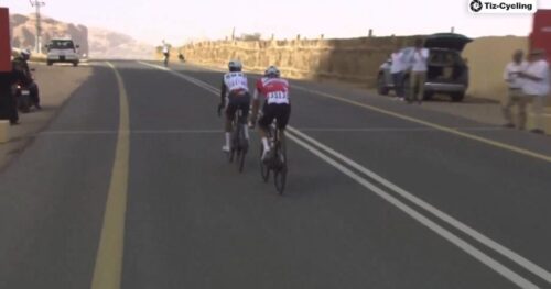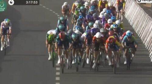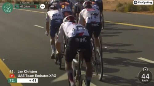 このステージで2度落車したUAE Team Emirates – XRGのヤン・クリステンは20秒のペナルティ。カーペーサーで集団復帰したと伝えられている。