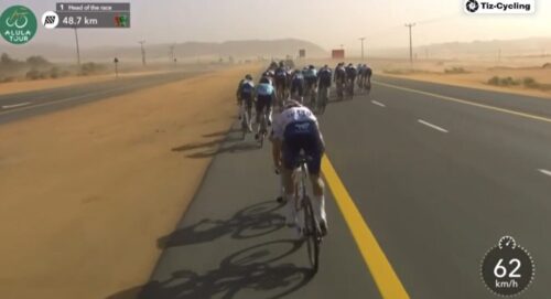 またも砂漠の中での最後はスプリント。ただ、第1ステージのように風で分断されるとわからない。