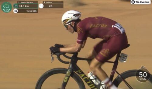 先頭からはCaja Rural – Seguros RGAに移籍したフェルナンド・ガビリアもきれた。ジョナサン・ミランのライバルは次々にいなくなる。