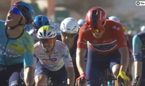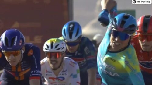 ジョナサン・ミランの真後ろにいたXDS Astana Teamのマッティオ・マルチェリが並びかける。