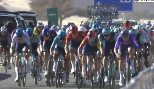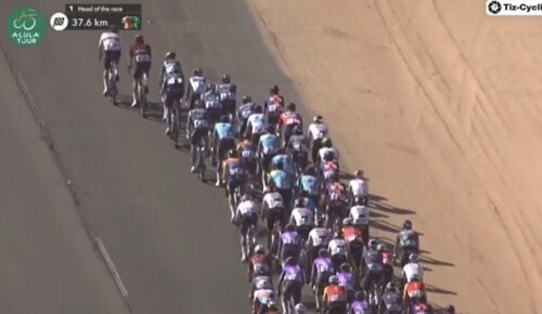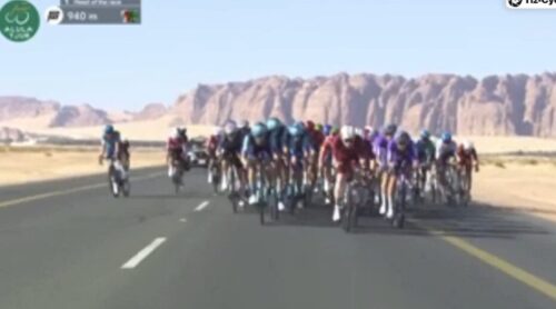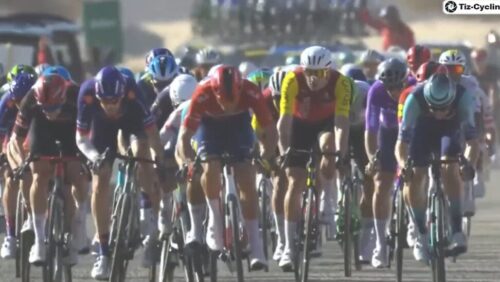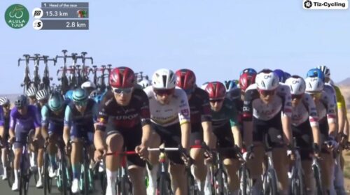 残り3.8km。まだTudor Pro Cycling Teamが引いている。
