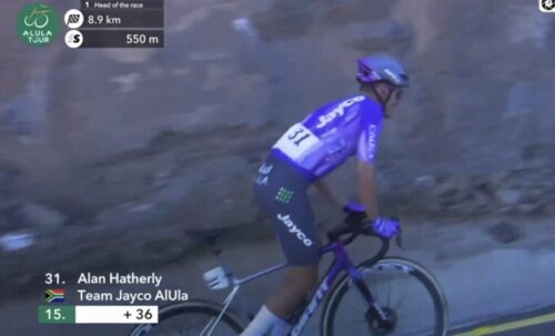 Team Jayco AlUlaのアラン・ハザリーも切れた。