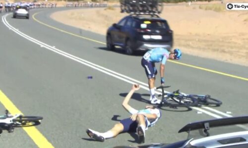 XDS Astana Teamのセルジオ・イギータとエフゲニー・フェドロフが落車だ。
