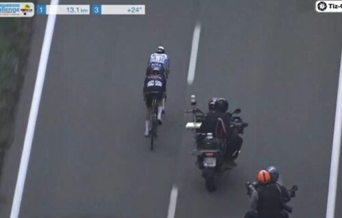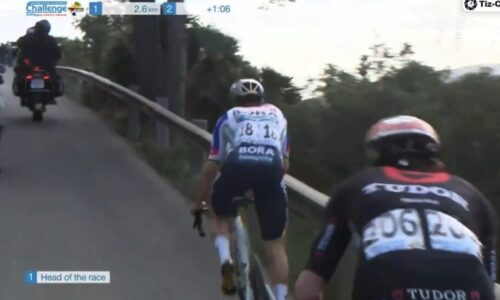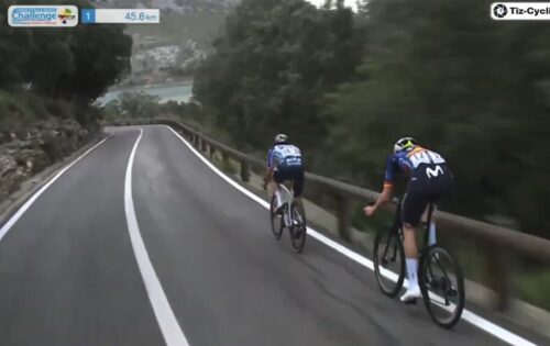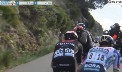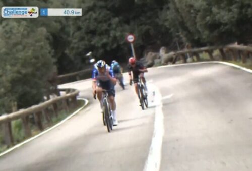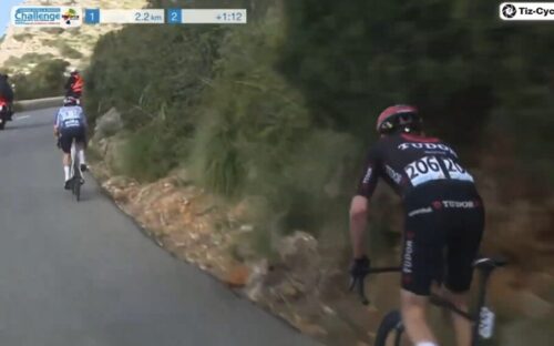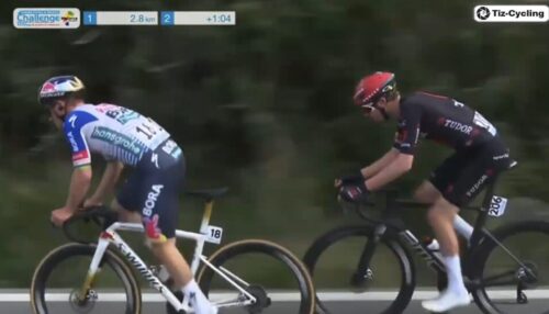 残り13.1km。ディエゴ・ペスカドールは切れてTudor Pro Cycling Teamのマティス・ロンデルとレムコの二人に。