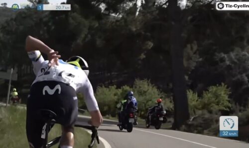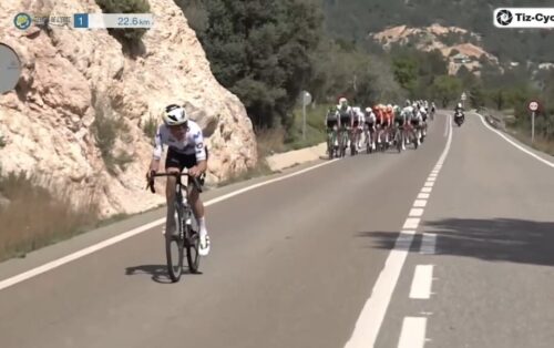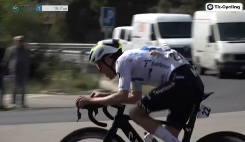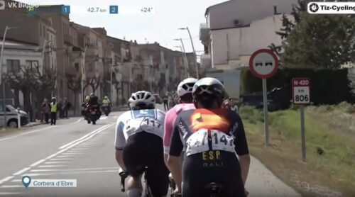 残り47.7kmで24秒差に。スペインのレースなのに展開が速いのはミラノ~サンレモをやっているからでしょうね。いつもこれくらいでやってくれればいいのに(笑