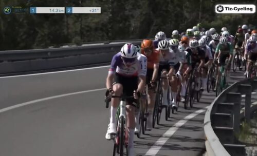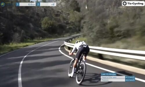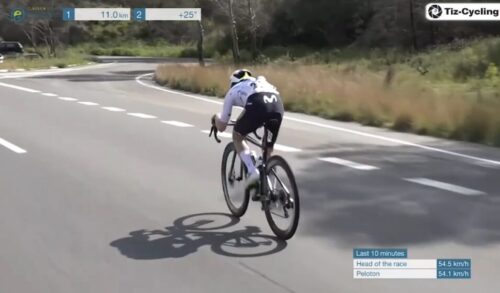 残り3.1km。Movistar Teamのフアン・ペドロ・ロペスはつかまっている。