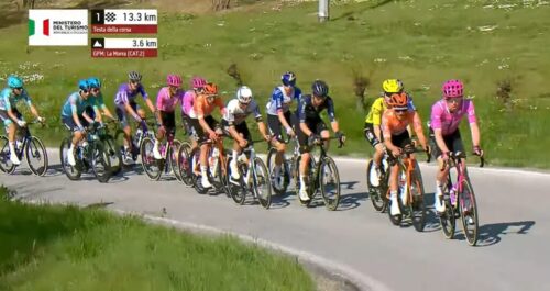 残り1.4km。 INEOS Grenadiersが先頭を引く。