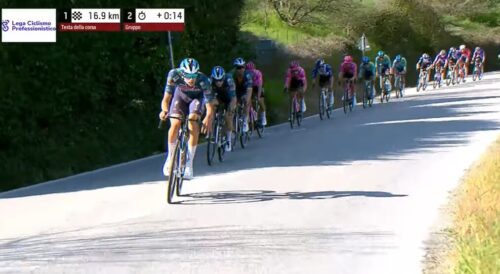 残り20.6km。先頭集団はマヌエーレ・タロッチが主導している。