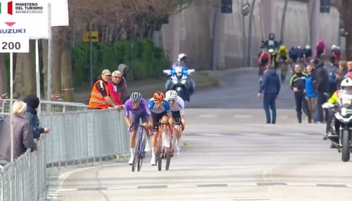 これまでアクセル・ローランスがずっとスプリントでマウロ・シュミットを破っていたけれど、流石にアラン・ハザリーがほとんど前を最後に引いてくれたので足がためられたのだろう。