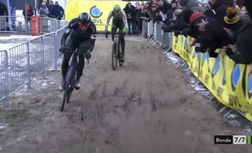 さらに偵察も雨でコースがドロドロになりできていない。スタートにはワウト・ファンアールト、エリ・イーゼルビットもいないのが残念。
