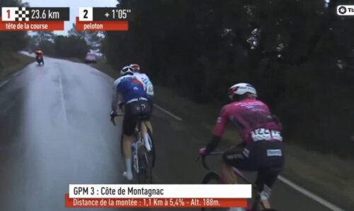 最後の上りに。タイム差は1分4秒に。