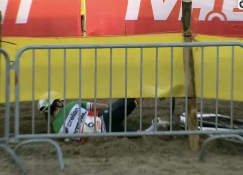 マイケル・ファントーレンハウトが落車。これはだめだ。