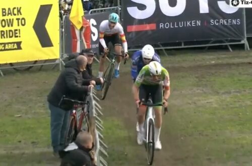 ゲルベン・カイパースが落車。後ろの選手はバニーホップで越えていく。