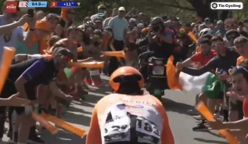 ハビエルロモの落車は、少女が押したように見えましたね。